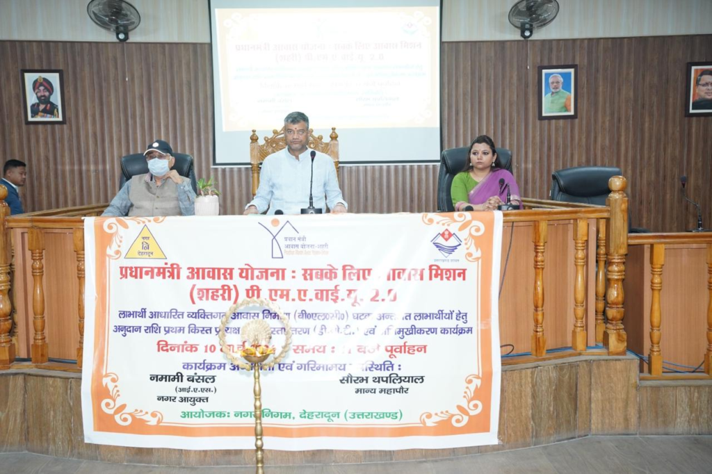 देहरादून | नगर निगम देहरादून ने मंगलवार को ‘प्रधानमंत्री आवास योजना (शहरी) 2.0’ के तहत 82 लाभार्थियों के बैंक खातों में घर निर्माण के लिए पहली किस्त जारी कर दी। महापौर सौरभ थपलियाल ने डीबीटी (Direct Benefit Transfer) के माध्यम से प्रति लाभार्थी 20 हजार रुपये की राशि ट्रांसफर की। कुल 16.40 लाख रुपये की ग्रांट जारी की गई है।