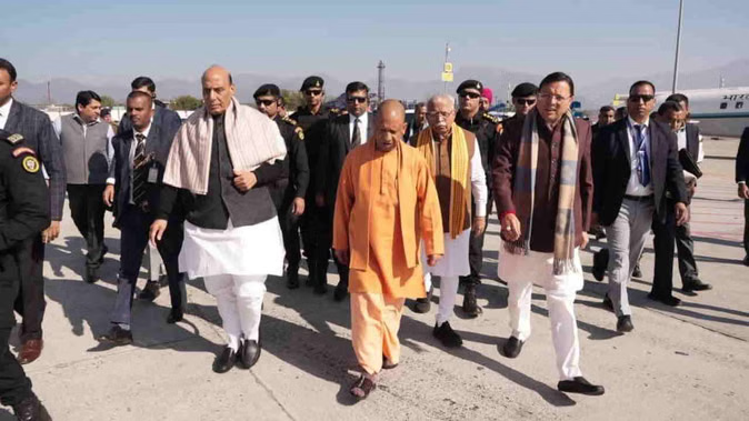 दिन की शुरुआत देहरादून के जॉली ग्रांट एयरपोर्ट पर एक आत्मीय स्वागत के साथ हुई। मुख्यमंत्री पुष्कर सिंह धामी ने रक्षा मंत्री राजनाथ सिंह, यूपी के सीएम योगी आदित्यनाथ और केंद्रीय मंत्री मनोहर लाल खट्टर का पुष्पगुच्छ देकर स्वागत किया। इस दौरान दोनों राज्यों के मुख्यमंत्रियों के बीच की ‘केमिस्ट्री’ और आपसी समन्वय चर्चा का विषय बना रहा।