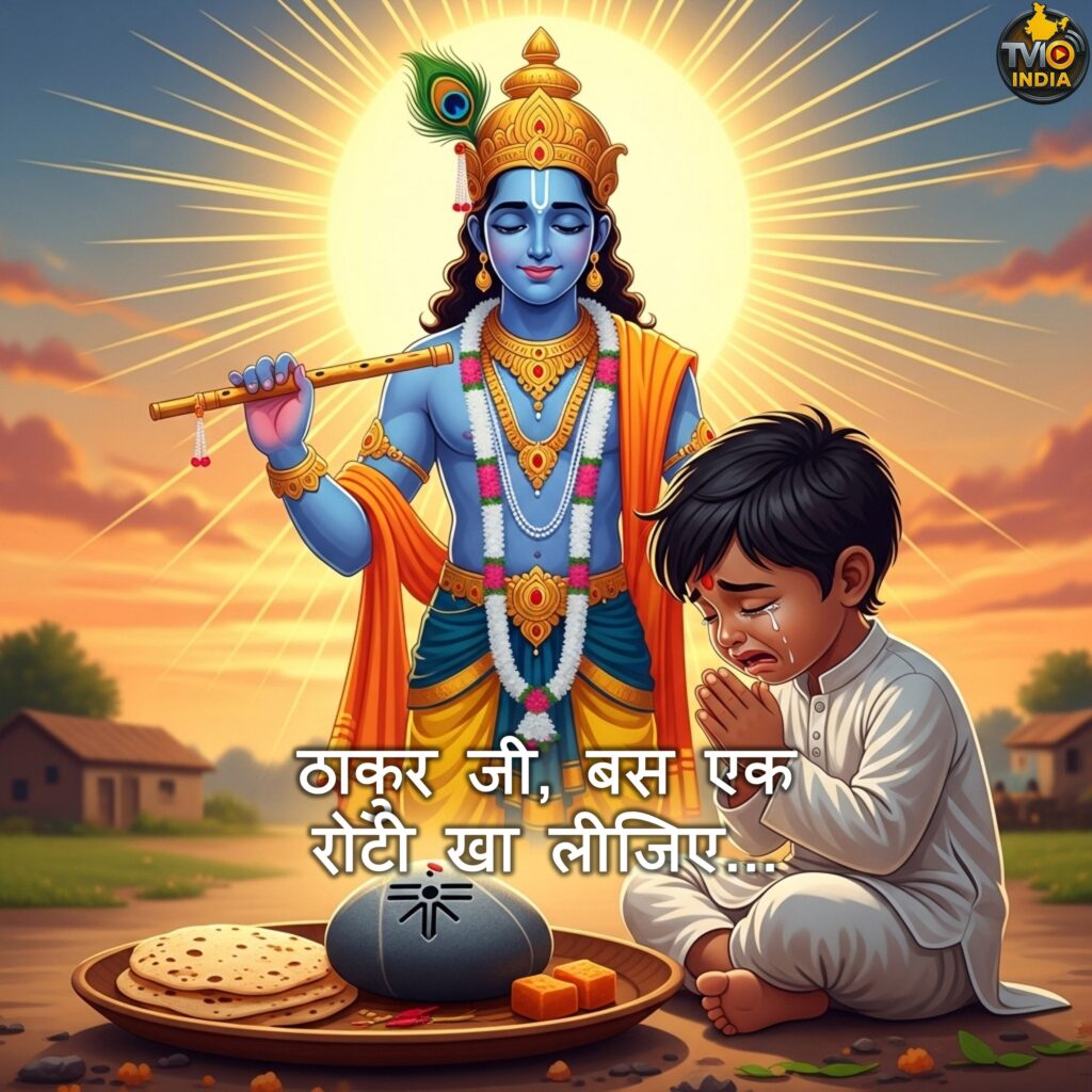 वे ठाकुर जी से प्रार्थना करने लगे, “हे ठाकुर जी! आप तो बड़े वाले ठाकुर जी हैं, आपको तो छप्पन भोग मिलते होंगे। मैं तो एक छोटा बालक हूँ और तीन दिन से भूखा हूँ। क्या आपको मुझ पर दया नहीं आती? मुझ पर दया करके थोड़ा सा भोग लगा लीजिए ताकि मैं भी कुछ खा सकूँ।”